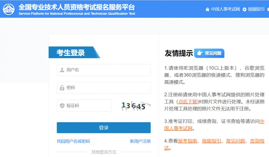 全國專業技術人員資格考試報名服務平臺功能用途:考試報名、打印準考證、成績查詢等