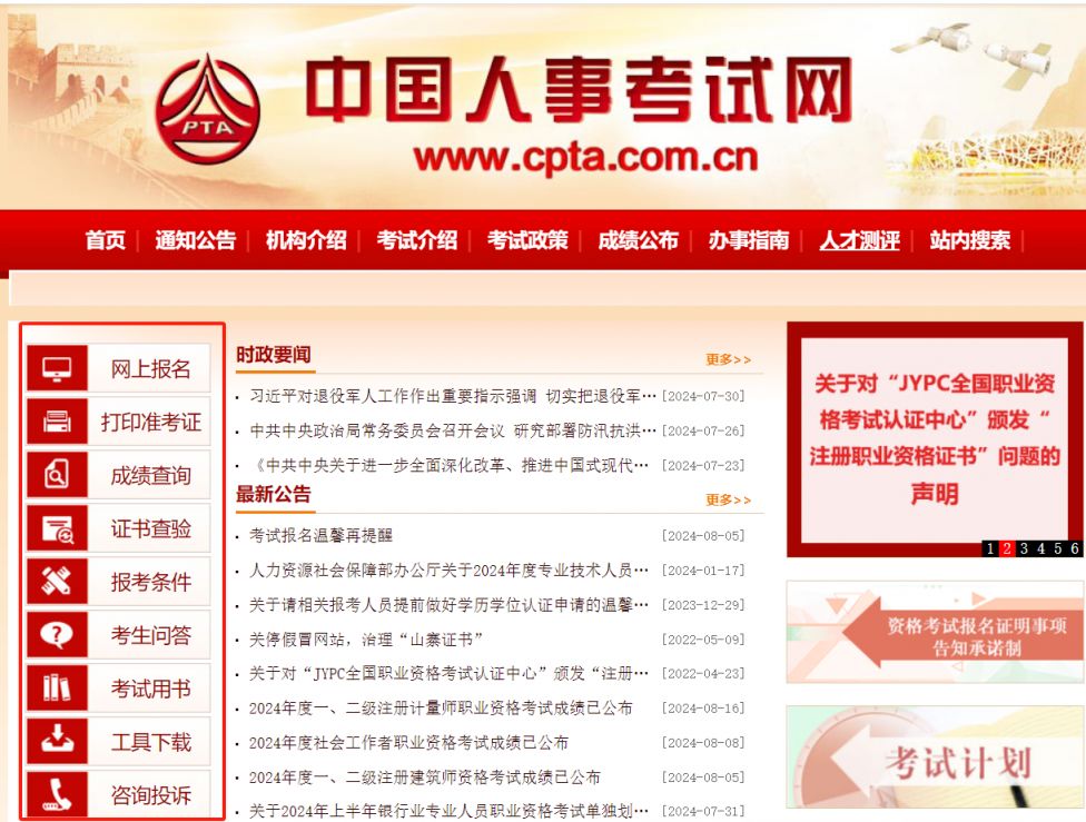 中國人事考試網官網入口網址:http://www.cpta.com.cn/